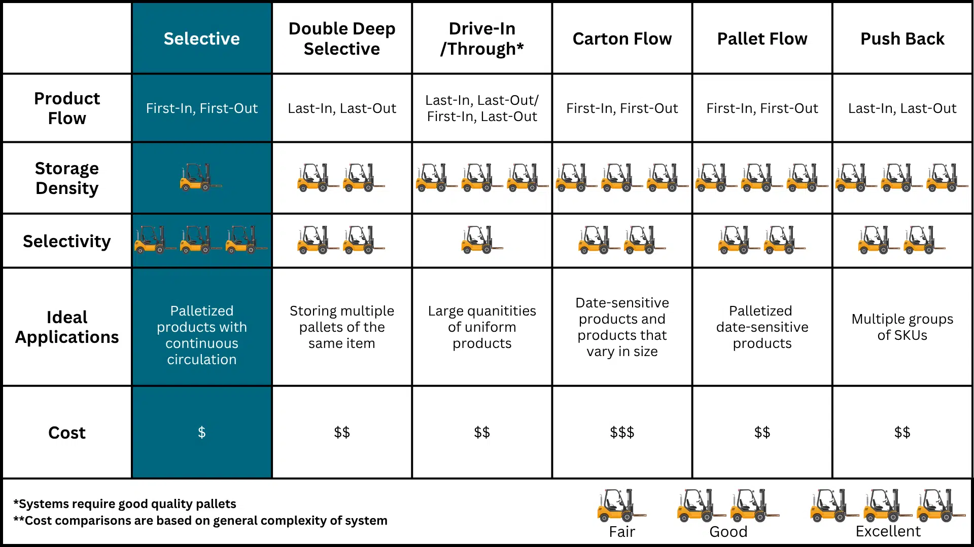 Click to see a comparison of double-deep selective rack versus single-deep.